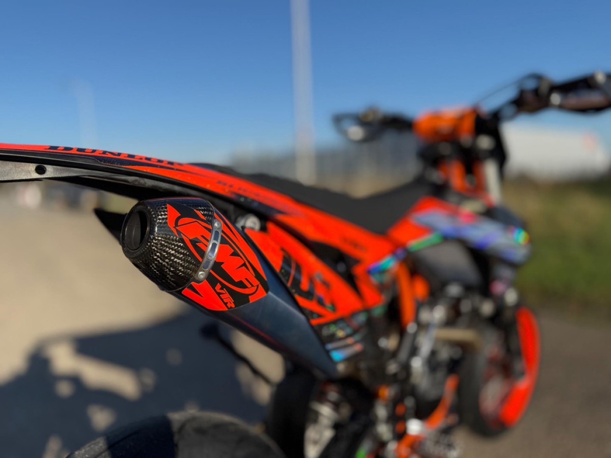 Al onze supermotards worden geleverd met originele demper. Slip-on demper zoals FMF,Akrapovic en HGS tegen meerprijs.