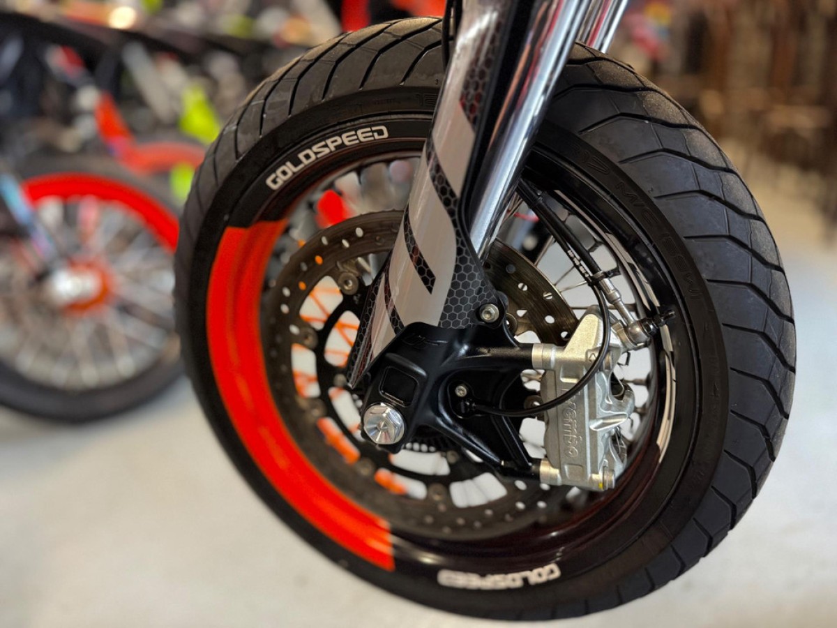 Al onze supermotards worden geleverd met originele demper. Slip-on demper zoals FMF,Akrapovic en HGS tegen meerprijs.